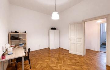 A tágas terek és a nagy ablakok kellemes, világos lakókörnyezetet biztosítanak, a klasszikus parketta pedig megőrzi a lakás polgári hangulatát.