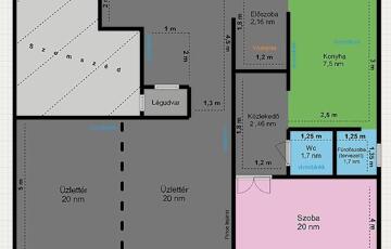 Összesen 89 nm ( 54 nm üzlet + 35 nm lakrész)