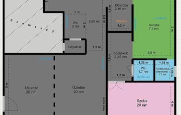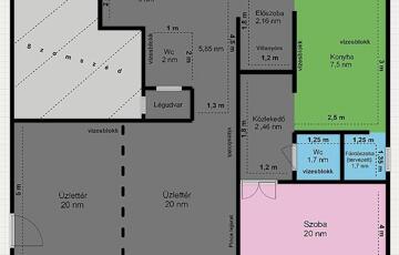 Összesen 89 nm (54 nm üzlet + 35 nm lakrész)