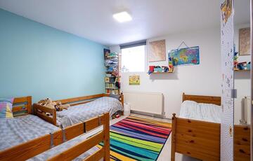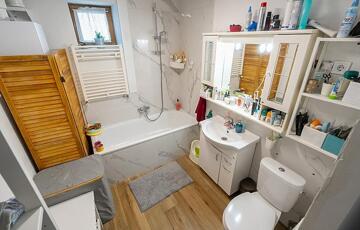 Fűtése korszerű kondenzációs kazán padlófűtéssel.