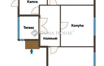 A ház helyiségei: 2 szoba, konyha, fürdőszoba, közlekedő, háztartási helyiség