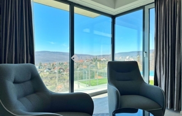 Exkluzív panorámás családi ház eladó Pécs MecsekoldalánPécs, Mecsekoldalon kínálunk megvételre kivételes adottságokkal rendelkező, újszerű állapotú családi házat. A gondosan megtervezett terek, a prémium anyaghasználat és a lenyűgöző körpanoráma tökéletes harmóniát alkotnak.Főbb jellemzők: 220 m² letisztult, elegáns lakótér 2087 m²-es, teljes intimitást biztosító telek 3 hálószoba, 2 fürdőszoba Világos, nagyvonalú belső terek, modern élettér-kialakítás 60 m²-es panorámás, részben fedett terasz 45 m²-es feszített víztükrű medence Privát szauna a teljes kikapcsolódásért Zavartalan körpanoráma Prémium műszaki tartalom: Energiahatékony hőszivattyús rendszer Wolf központi szellőztető rendszer Vízlágyító és automata öntözőrendszer Elektromos zsalúziák minden nyílászárón Riasztó- és kamerarendszer Magas szintű kivitelezés: 38-as PTH falazat, 10 cm-es hőszigeteléssel Modern alumínium nyílászárók Időtálló, elegáns mészkő homlokzat Prémium burkolatok: minőségi laminált parketta és mázas kerámia 40 m²-es garázs Hörmann kapuval Teljesen intim, zárt telek További értékek: Az ingatlan mindössze 5 éve épült, újszerű állapotban van Igény esetén teljes bútorzattal (megegyezés szerint) A vételár részét képezi egy kb. 700 m²-es, panorámás, részben közművesített telekrészEz az ingatlan ideális választás azok számára, akik kompromisszumok nélkül keresnek exkluzív otthont, páratlan környezetben.További információért kérem, keressen bizalommal!
