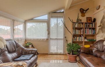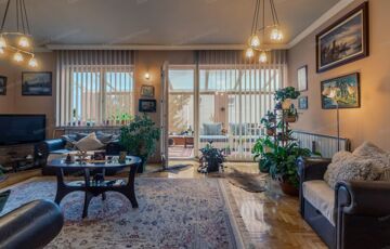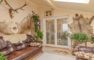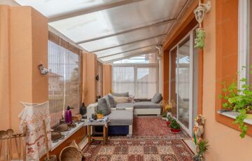 Tágas, fényárban úszó nappali hatalmas üvegfelületekkel, télikert kapcsolattal
