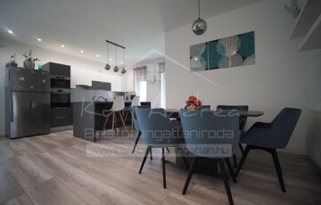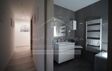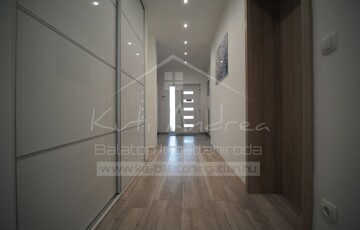 • A ház esztétikailag nagyon mutatós és praktikus. A teljes lakórész a vizes helységeket leszámítva jó minőségű egységes színű laminált parkettával lett lerakva. Vizes helységek kerámia burkolatot kaptak. A színek harmonizálnak és tisztítás szempontjából is praktikusak.