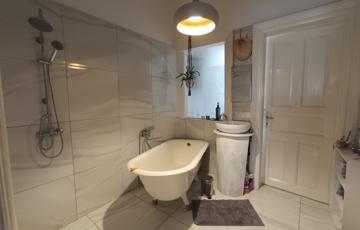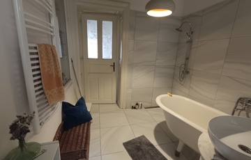 Fürdőszoba: modern, zuhanyzós és lábaskádas, tágas, világos, átszellőztethető