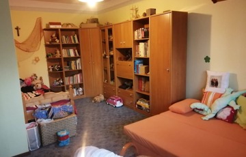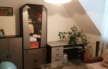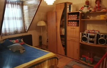 A tetőtérben 3 szoba, egy zuhanyzós fürdőszoba, és itt is egy külön WC.