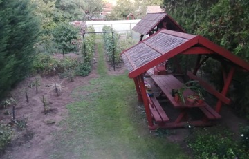 A ház előtt kisebb előkert, a ház mögött nagyobb kert-udvar van, ahol egy ásott kút is található. A ház mögötti rész egy szolgalmi úton gépjárművel is megközelíthető, illetve be lehet állni az udvarba is.