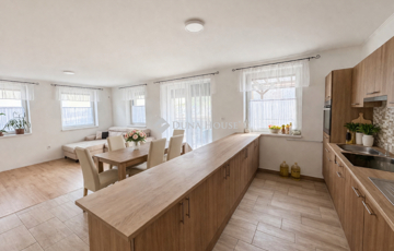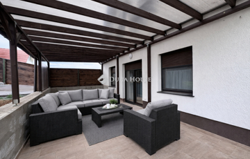A tágas, világos nappaliból egy nagy, fedett terasz nyílik, amely ideális családi és baráti összejövetelekhez.