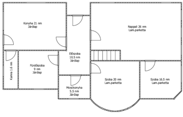 - Kültér: 1600 nm-es sík, panorámás telek, terasz, udvari gépjárműbeálló, 35 nm-es garázsalap.