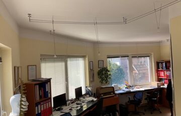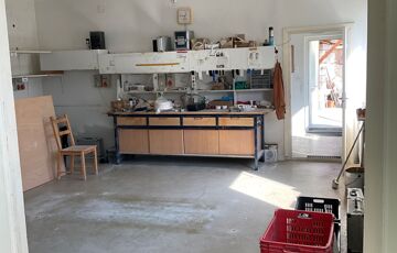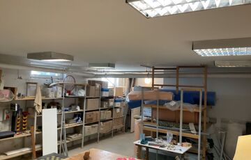A raktárhelyiségek részben polcozottak, emellett munkapadok, beépített és irodai bútorok is rendelkezésre állnak.