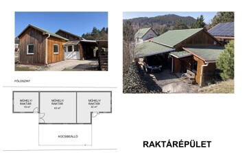 A telephelyen használatbavételi engedéllyel rendelkező, 308 m²-es üzlet/üzem(műhely) épület, valamint 78 m²-es raktárépület található, további bővítményekkel.