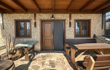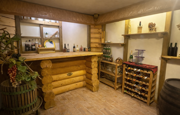 Alsó szint: hangulatos borospince kialakított vendégtérrel és teraszkapcsolattal – ideális pihenéshez és vendégek fogadására