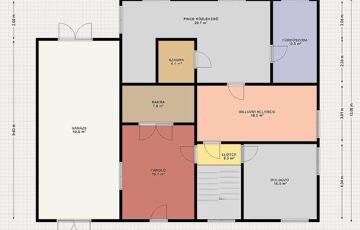 Az épület három szinten helyezkedik el. A földszint 144 m² alapterületű, ahol előtér, nappali, két hálószoba, konyha, étkező, fürdőszoba, külön mellékhelyiség és terasz található. Az emelet 126 m²-es, itt egy előtér, hat hálószoba, valamint egy mellékhelyiséggel ellátott fürdőszoba került kialakításra. A pince szint 114 m²-es, ahol közlekedő, szauna, fürdőszoba, kamra, dolgozószoba, biliárd helyiség, tároló és garázs kapott helyet.