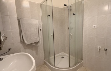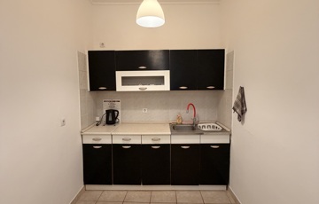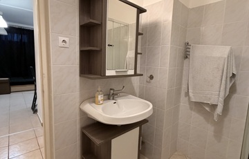 A lakásban a konyha és a nappali egy légtérben helyezkedik el. A fürdő és a wc egy helyiségben található.