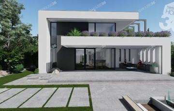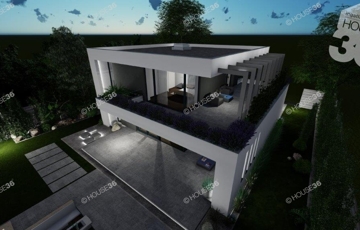 Az összközműves, 900 m2-es telekre egy 126 m2-es prémium minőségű 2 szintes házat terveztek.