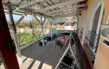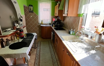 A családi ház klímákkal és napelemmel felszerelt, konyhájában egyedi gépesített konyhabútor került beépítésre. Az ingatlan alsó szintjén egy szoba, nappali, konyha, fürdőszoba, WC, található. Az emeleten két külön nyíló szoba, fürdőszoba, WC került kialakításra.
