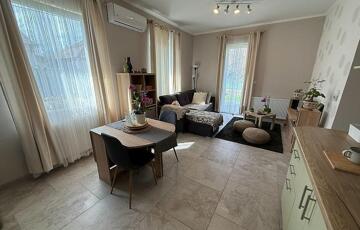 A fűtést és a meleg vizet kombi cirkó biztosítja, a nappaliban hűtő-fűtő klíma található.