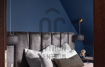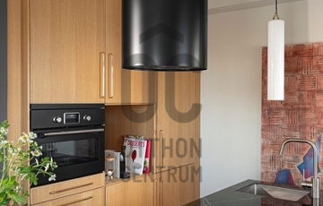 A helyiségekben minden részlet harmóniát sugall: az egyedileg készített beépített bútorok, a kerámiaburkolatú konyhasziget és mosdószekrény, a nappali tágas, kényelmes kanapéja és lábtartója, valamint a hálószoba franciaágya mind ide tervezett, prémium megoldások.