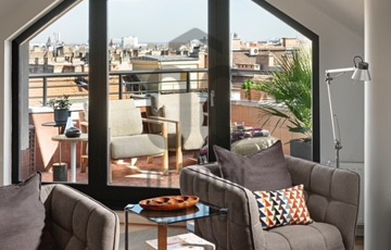 A klimatizált, nyolcadik emeleti, bruttó 92 m²-es ,nettó 80 nm + teraszos,féltetőtéri lakás igazi városi oázis: ablakai a fás, csendes belső kertre és a környező háztetőkre nyílnak, míg a 9 m²-es teraszról páratlan kilátás tárul elénk a Városligettől egészen a Citadelláig.