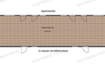 Apartmanház: földszint ~70 m² (két apartman), szuterén ~80 m²