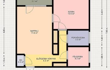 A lakás 52m2-es, tégla építésű, 4nm loggiával.
