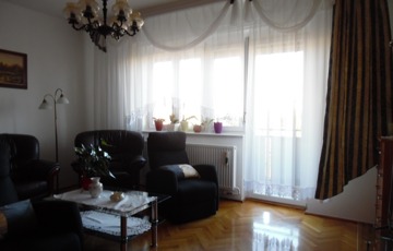 Zala megye, Nagykanizsa, összességében 140m2-es erkélyes lakás eladó. A dél-zalai település északi városrészén található, második emeleti, beépített tetőtérrel rendelkező ingatlan fogadó szintjén 3 hálószoba (melyekből az egyik erkélyes), egy dolgozószoba, gardrób, nappali, közlekedő, konyha, kamra, tároló, fürdőszoba és illemhelyiség, míg a tetőtérben szoba, konyha, közlekedő és fürdőszoba került kialakításra. A nyolcvanas évek elején épült társasház földszintjén a lakáshoz külön tároló is tartozik. A lakás melegéről gázkazán gondoskodik, radiátoros hőleadókkal. Az ingatlan felújítása, korszerűsítése (vezetékek, kazán, burkolatok stb cseréje) az elmúlt évben megtörtént. A kulturált lakóközösséggel rendelkező társasház zárt udvarán az ingatlanhoz gépjármű beálló is tartozik.