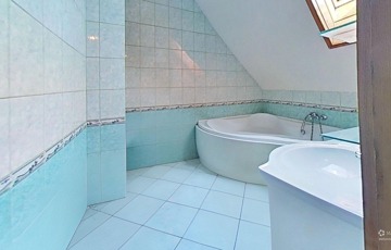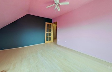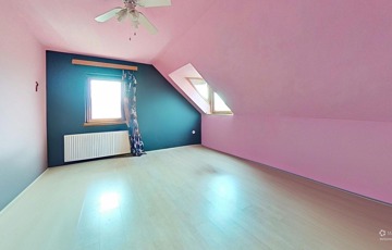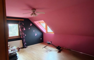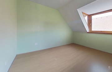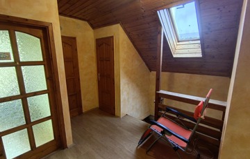Az emeleten három külön nyíló hálószoba, egy erkély, egy kádas fürdőszoba és egy külön WC található.