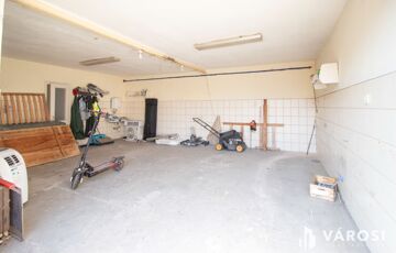 A telek, hátsó része külön kerített, ezen a részen három garázs, illetve egy vizesblokkal is rendelkező, 78 m2-es műhely került kialakításra.