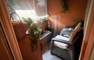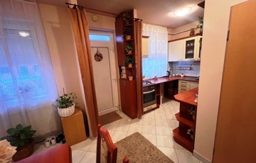 A lakás jó állapotú, műanyag nyílászárókkal és redőnyökkel felszerelt. A burkolatok járólap és laminált padló. A konyhában beépített konyhabútor található. A fürdőszoba és a WC külön helyiségben kapott helyet. A fűtést egyedi gázfűtés biztosítja.