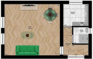 A lakás szerves részét képezi a közvetlenül mellette található 2nm-es kamra.
