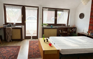 Tartozik hozzá a padlástérből a felette lévő rész, illetve egy 30 négyzetméteres garázs, elektromos kapunyitóval.