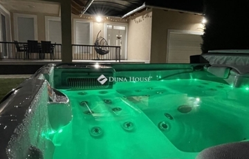 Modern családi ház PécsÚjhegyen napelemmel és dupla garázzsalPécs Újhegy csendes részén, a Barázda utcában eladó egy 2010-ben épült, egyszintes családi ház, amely ideális választás lehet családok számára.164 m² összterület 132 m² lakótér 32 m² kétállásos garázsHelyiségek: amerikai konyhás nappali étkezővel 3 hálószoba gardróbszoba 2 fürdőszoba + vendég WC kamra és háztartási helyiség 20 m² fedett teraszFőbb műszaki jellemzők:Viessmann gázkazánpadlófűtés és radiátorvízteres kandallóHoneywell helyiségenként szabályozható fűtés5,2 kW klíma3x25 Amper 7 kW napelem rendszer szaldó elszámolással 2030.12.31-igExtrák: elektromos alumínium redőnyök elektromos garázskapu és kertkapu riasztórendszer és kamerarendszer vízlágyítóUdvar: * telepített robotfűnyíró* privát kert Leylandi sövénnyel* privát játszótér* kerti sütő / grill rész* 10 m² faház* fatároló* finn szauna és jakuzzi* 10m3-es ciszterna gépesítve öntözésre* gyümölcsfákNyugodt, családi házas környezet, tágas és világos terekkel.Minden adott, hogy ez legyen az új, komfortos otthona.Érdeklődés esetén keressen bizalommal. Tekintsük meg együtt, hogy személyesen is meggyőződhessen, ez amit eddig keresett!