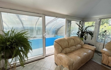 - 30 m2 beépített terasz közvetlen átjárással a nappaliba, a teraszon fedett 6 x 3 x 1,5 m mély medence