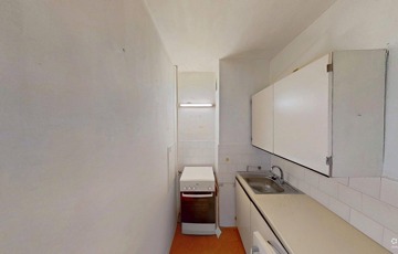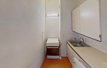 A konyha és a kisszoba közötti fal bontásával akár egy praktikus étkező vagy amerikai konyhás tér is kialakítható. A jelenlegi beépített szekrény igény szerint eltávolítható, így még tágasabb, szellősebb tér hozható létre.