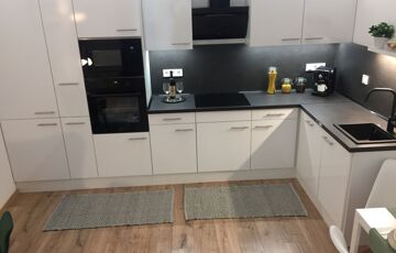 Komplett felszerelt konyha, beépített gépekkel.