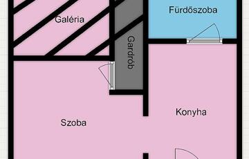 A lakás jó állapotú, praktikus elrendezésű, a belmagasságnak köszönhetően galériával bővített, így a hasznos élettér még kényelmesebben kihasználható. A galéria alatt egy kb. 2 nm-es gardrób is kialakításra került, ami plusz tárolási lehetőséget biztosít.