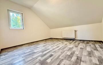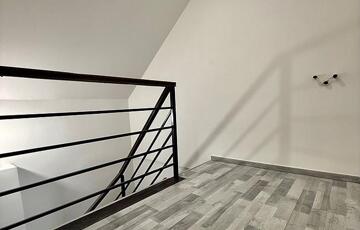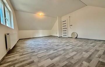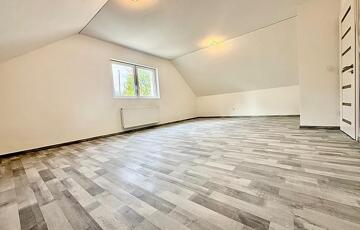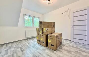 Az emeleten amerikaikonyhás nappali, 2 szoba, fürdő és egy gardrób istalálható.