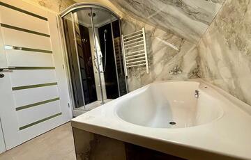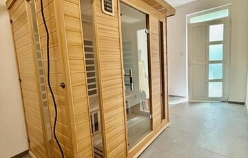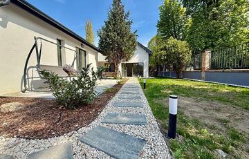 Tartozik a házhoz fedett kocsibeálló, Jacuzzi és kombinált finn szauna, valamint a napelemes rendszer és elektromos autó töltő rendszer előkészítése is megtörtént.