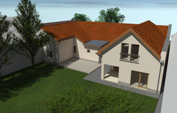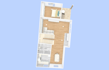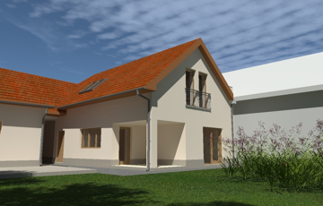 Békásmegyer -Ófalu hangulatos műemlék jellegű környékén eladó egy alapoktól korszerűen újjáépített kertkapcsolatos lakás kétlakásos házban .