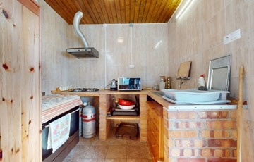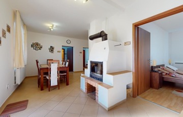 romantikus kemencés kerti házikó terasszal, ahonnan csodás a kilátás
