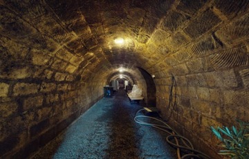 boltíves, kövekkel kirakott pince, amely hangulatos leülős részekkel borozásra, baráti beszélgetésekre hív