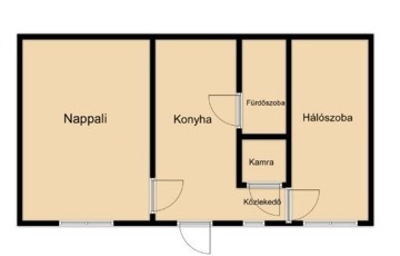 A lakás a harmadik emeleten egy körfolyosóról nyílik. A tágas konyhába érkezünk amiben egy étkező sarok is elfér. Balra a tágas nappali szoba aminek ablaka a nyitott körfolyosóra néz ez által kellően világos. A gépesített étkezősarkos konyhából nyílik a kádas fürdőszoba amiben a toalett is helyet kapott. Jobbra a közlekedőből nyílik egy kamra ami biztosítja a tárolási lehetőséget. Szemben a hálószoba aminek az ablaka szintén a folyosóra néz.