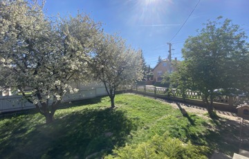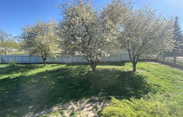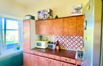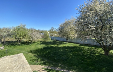 A konyha közvetlen teraszkapcsolattal rendelkezik, amely a hátsó, gondozott udvarra néz — tökéletes helyszíne lehet egy reggeli kávénak vagy baráti grillezésnek.