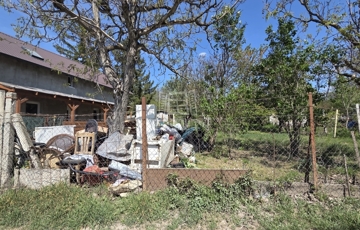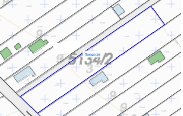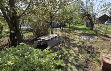 Aszfaltos utcában kínálunk eladásra egy hosszúkás (utcafront 12 m) gyümölcsfákkal és gazdasági épülettel rendelkező 832 m2-es csendes hobby telket.