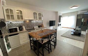 A lakás egy légterű, garzon tágas amerikai konyhás nappalival rendelkezik, melyet praktikus, átgondolt kialakítás jellemez. A konyha kiváló méretű és teljesen felszerelt, a burkolatok minőségiek, a háromrétegű fa nyílászárók pedig kiváló hő- és hangszigetelést biztosítanak. A hűtő-fűtő klímaberendezés egész évben kellemes hőmérsékletről gondoskodik. A lakás rendkívül világos, napfényes, erkélye pedig csendes mellékutcára néz, így ideális pihenésre.