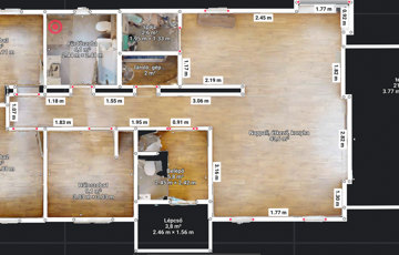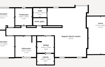 -3 hálószoba + nappali-konyha-étkező, gardrób + spájz, fürdő (kád + zuhany) + külön WC