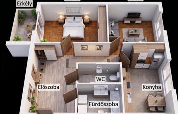Egy 57 négyzetméteres, 2 szobás, logikusan élhető tér. És mielőtt megkérdezné: NEM az egybenyílós fajta! A szobák külön nyílnak, így a családi béke garantált, senkinek nem kell éjszaka nindzsaként kommandóznia a másik szobáján keresztül a mosdóig. A nappali és a 4 négyzetméteres erkély ráadásul déli fekvésű. Ez az erkély nem arra való, hogy a járókelőket figyelje róla, hanem a tökéletes helyszín egy jó kávéhoz, olvasáshoz és a munka utáni megérdemelt pihenéshez.