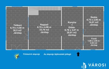 A lakás 1 db nappalival, 3 db hálószobával, 1 db fürdőszobával (Wc-vel), közlekedővel, előtér konyhával,, télikerttel rendelkezik.