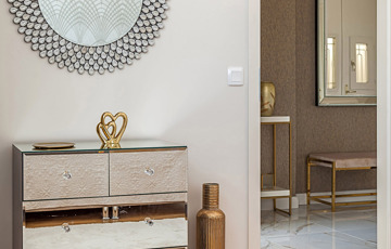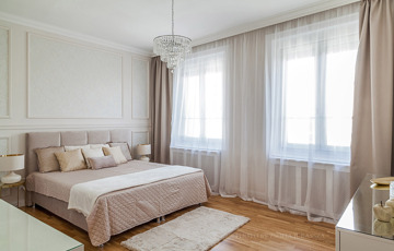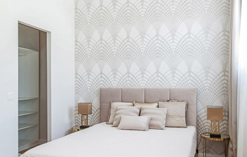 A lakás elrendezése: tágas, amerikai konyhás nappali közvetlen kijárattal a panorámás erkélyre, két nagyméretű hálószoba, külön gardróbszoba, két - káddal, ill. zuhanyzóval felszerelt - fürdőszoba (mindkettő WC-vel), kényelmes, jól használható előszoba.
