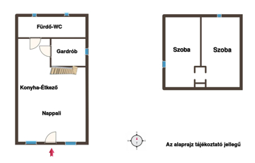 Az ingatlan nappali + 2 hálószobás elrendezésű, ideális nyaralónak vagy állandó lakhatásra is. Az elmúlt időszakban felújításon esett át: 10 cm hőszigetelést kapott, korszerű műanyag nyílászárók, modern burkolatok kerültek beépítésre.
